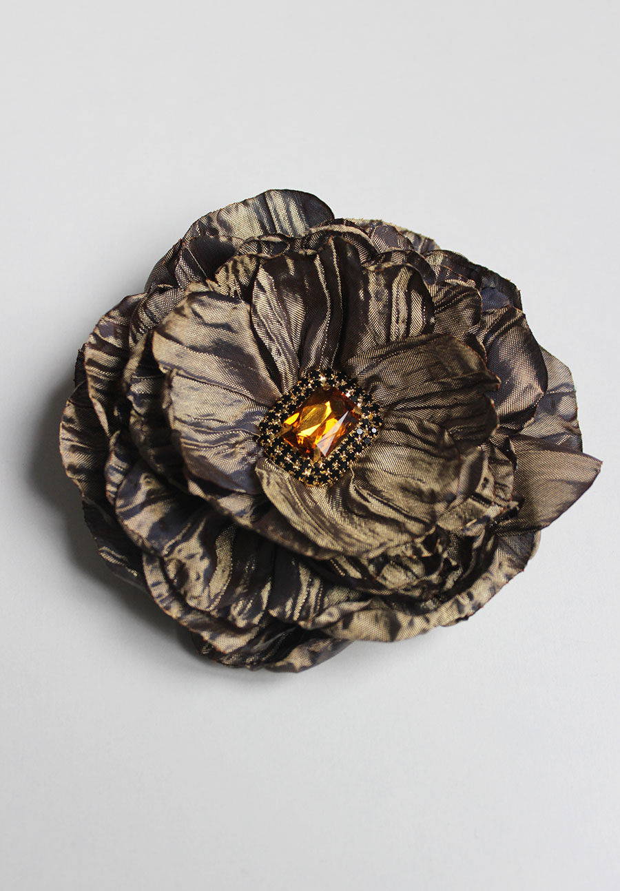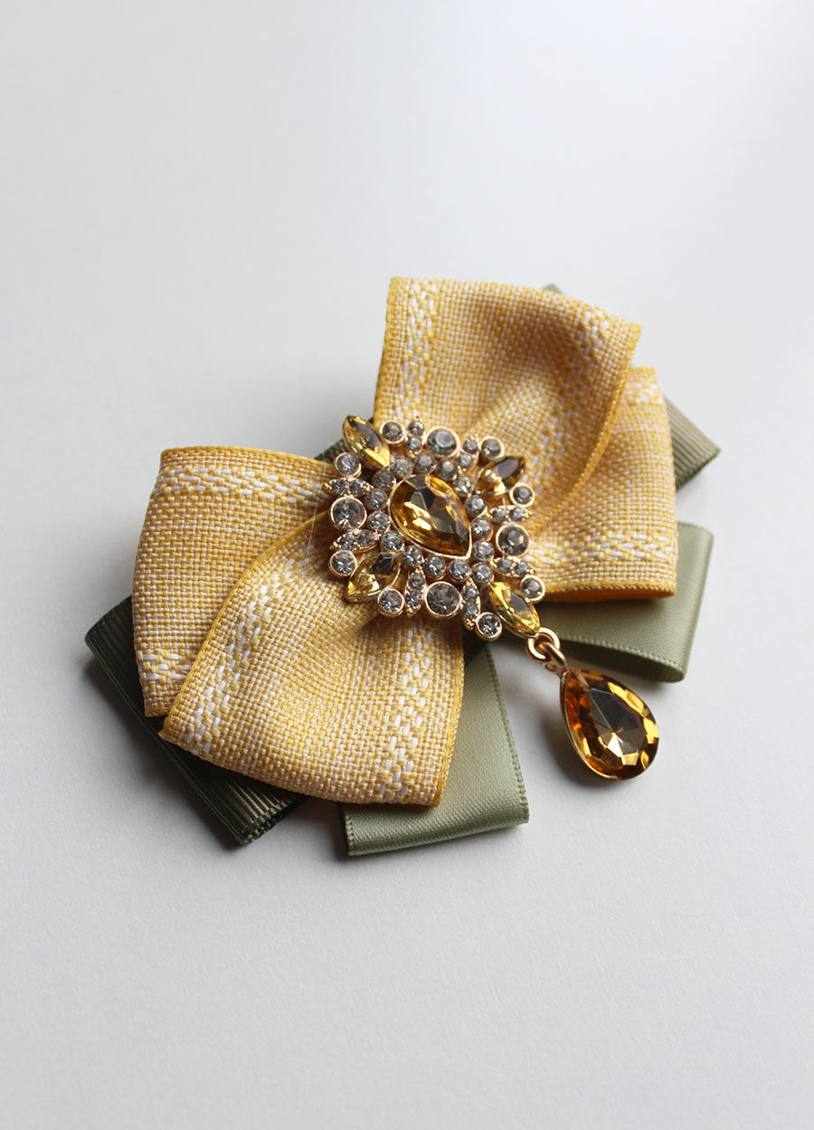 Елегантна и стилна, представяме ви ръчно изработена папийонка Анастасия. Моделът е направен от сатен, вълнена лента със златисти нишки и черно кадифе. Дизайнът се откроява със златна катарама с перлени камъни.