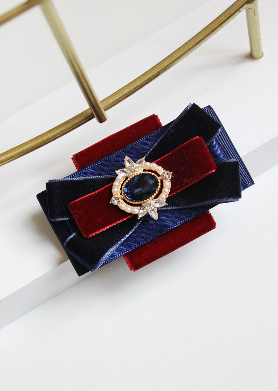 Ръчно изработена папийонка от тъмно син цвят - кариран плат, сатен и кадифе. Моделът се закопчава със секретна игла на гърба. Изчистен и стилен дизайн, който лесно можете да комбинирате с всичко.